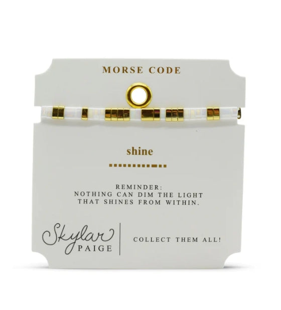 STRETCH BRACELETS IN THIS COLLECTION ARE MADE FROM PREMIUM QUALITY, JAPANESE GLASS MIYUKI® TILA BEADS. THE BRACELETS ARE METICULOUSLY ASSEMBLED WITH A MORSE CODE PATTERN, INSPIRATIONAL MESSAGING & STYLISH PACKAGING. OUR BRANDS MISSION IS TO EMPOWER THE FEMALE SOUL!