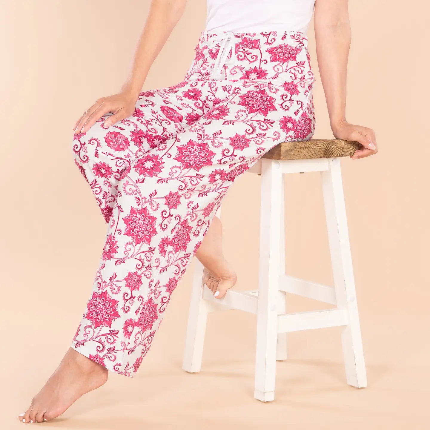 Lounge in lively comfort with our beautiful 'Tickled Pink' pajama pants! - Perfect for those who adore vibrant patterns and a touch of classic sophistication in their loungewear. - Ideal for relaxed evenings at home or leisurely weekend mornings, inviting cheer into your daily routine. - These pants are a wonderful gift for anyone who loves bold florals and comfortable, stylish sleepwear.